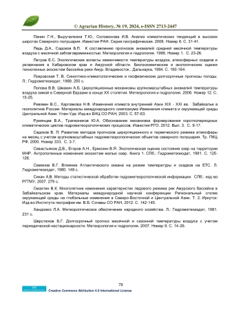19. Семенов В.Г. Влияние Атлантического океана на режим температуры и осадков на ETC. Л. Гидрометеоиздат, 1960. 148 с.