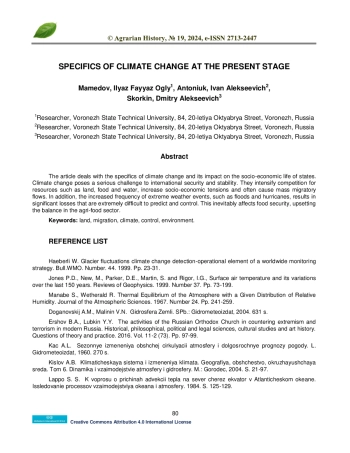 2. Jones P.D., New, M., Parker, D.E., Martin, S. and Rigor, I.G., Surface air temperature and its variations over the last 150 years. Reviews of Geophysics. 1999. Number 37. Pp. 73-199. EDN: LRYRYB