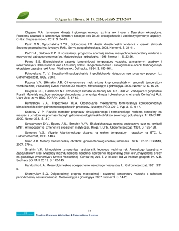 9. Обязов В.А. Изменение климата и гидрологического режима рек и озер в Даурском экорегионе. Проблемы адаптации к изменению климата в бассейне рек Даурии: экологические и водохозяйственные аспекты. Чита: Экспресс-изд-во, 2012. С. 24-45. EDN: RFTHOH