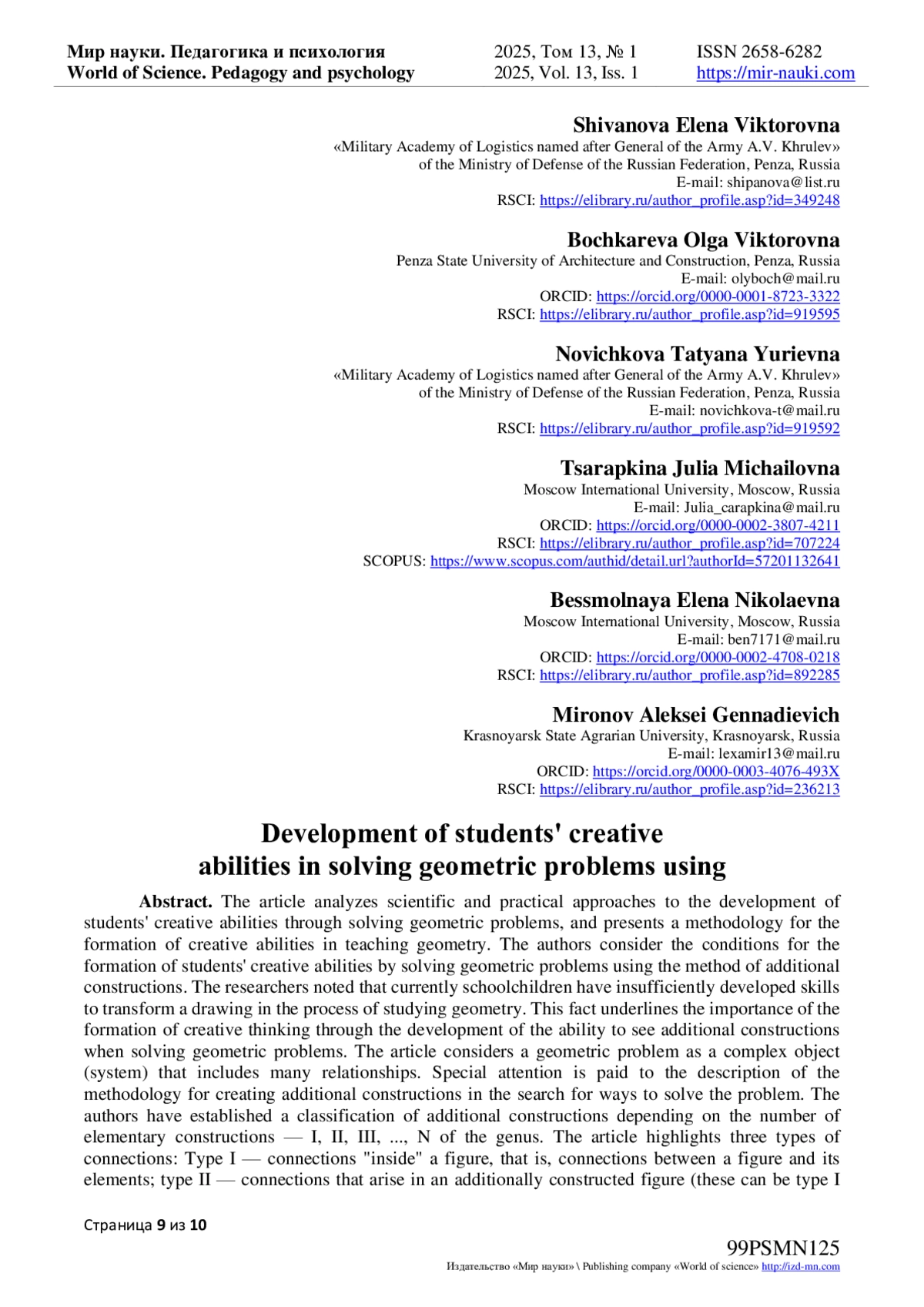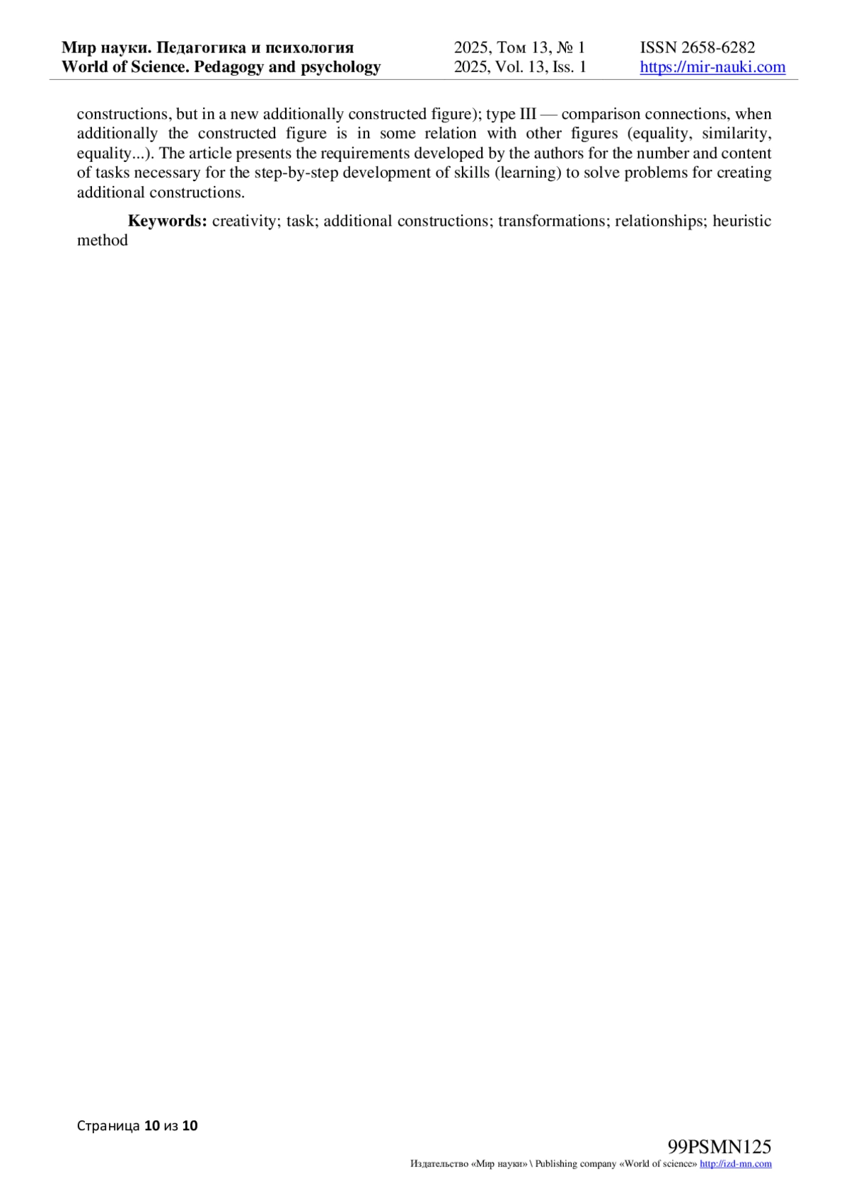 - ИЗДАТЕЛЬСТВО МИР НАУКИ
