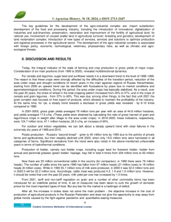 In the current realities, despite the foreign policy sanctions pressure, Russia continues to increase the production capacity of the agro-industrial complex. According to the estimates of the Ministry of Agriculture of Russia, in 2022 the planned values of self-sufficiency level provided for by the project “Development of Agroindustrial Complex Sectors” will be reached or exceeded for grain - 177.8%, sugar - 103.2%, vegetable oil - 211.1%, meat and meat products - 100.9%, fish and fish products - 153.3%. Own sustainable grain production is an important factor of the country’s food security. According to Rosstat, in 2022 a record gross grain harvest was obtained - 157.7 million tons in weight after tillage, which is 29.9% higher than the 2021 harvest (121.4 million tons). For the first time in Russia’s history, a record 104.2 million tons of wheat was harvested, which is 37.1% more than in 2021 (76.1 million tons). Approved in September 2022, the “Strategy for the development of the agro-industrial and fishery complexes of the Russian Federation for the period until 2030” is aimed at ensuring long-term and prospective development of the country’s agro-industrial complex.