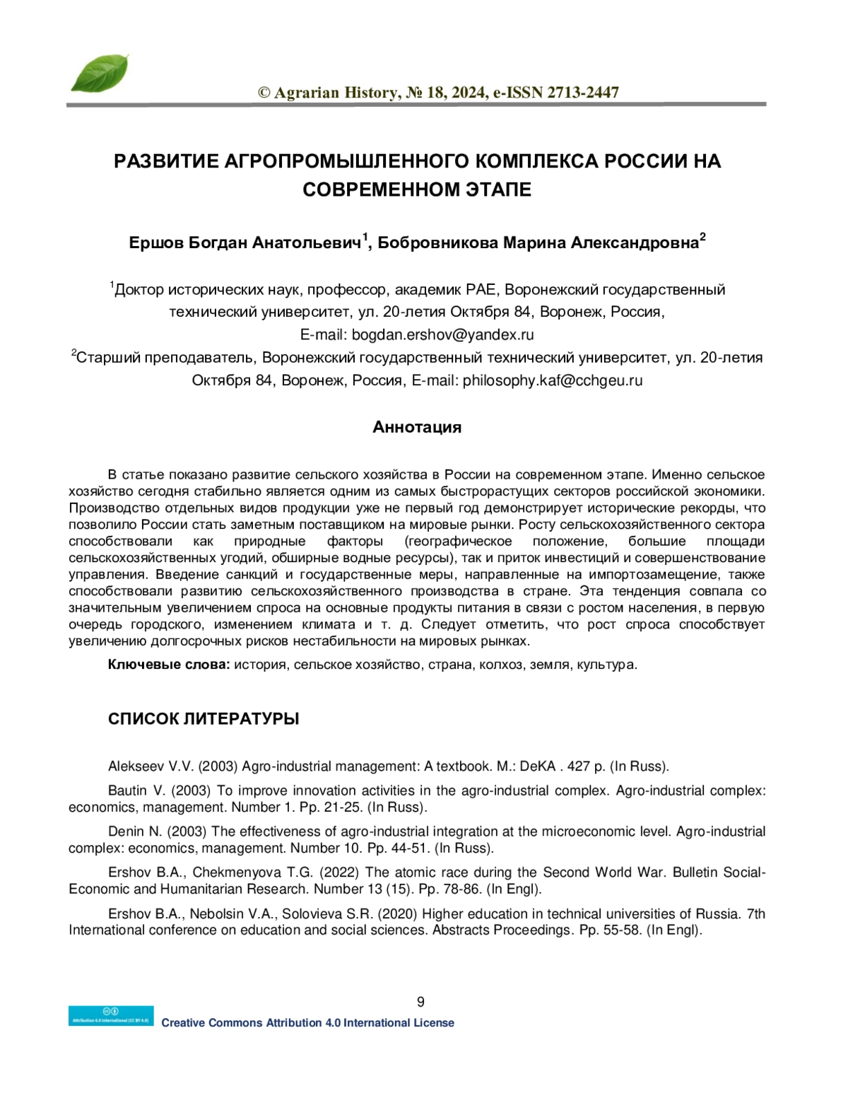 9. Княгина Г.В. (2006) Институциональные риски в сельскохозяйственном секторе, их классификация и направления снижения. Научные труды Донецкого научно-технического университета. № 4. С. 156-160. (На русском языке).