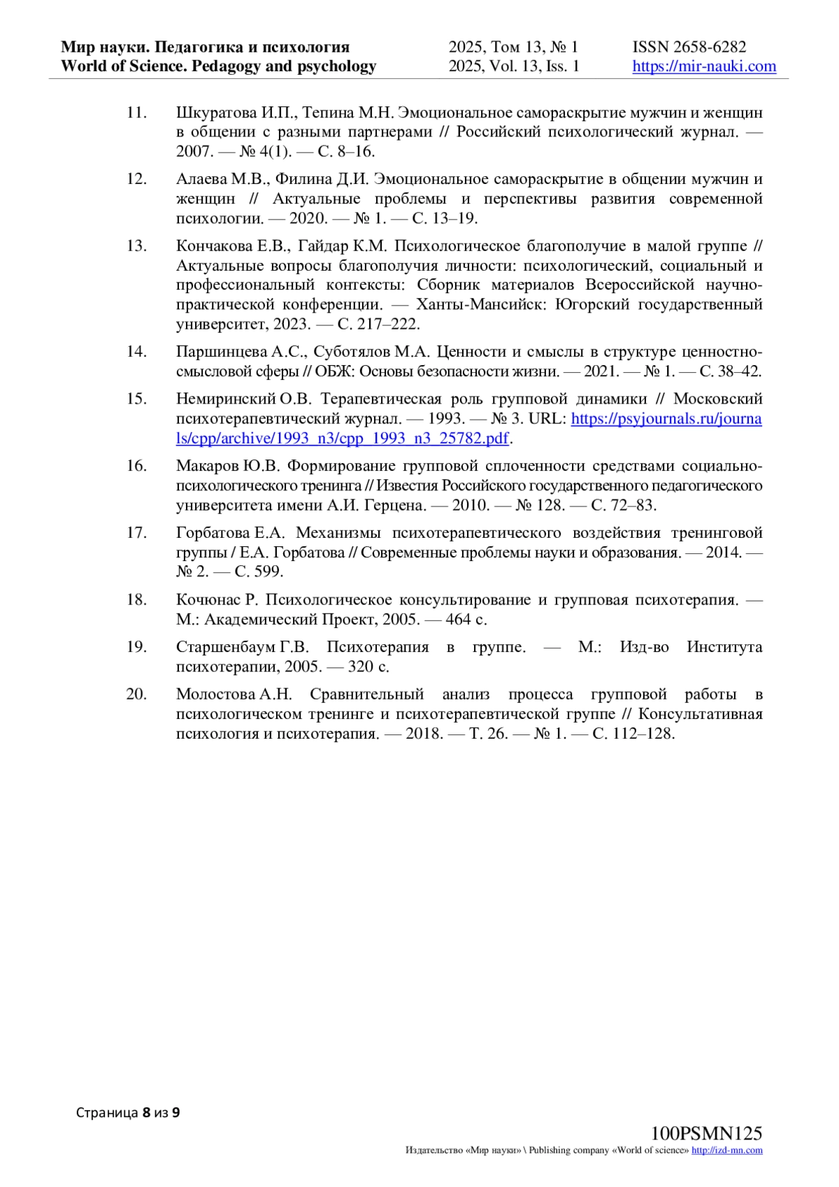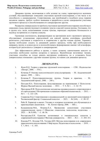 15. Немиринский О.В. Терапевтическая роль групповой динамики // Московский психотерапевтический журнал. - 1993. - № 3. URL: https://psyjournals.ru/journals/cpp/archive/1993_n3/cpp_1993_n3_25782.pdf.