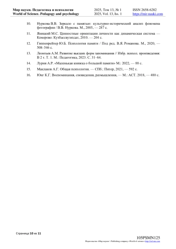 4. Василевская К.Н., Кабардов М.К., Нуркова В.В. Индивидуально-типологические особенности автобиографической памяти // Журнал Психологические исследования. 2011 г. № 2(16). EDN: NTUVND