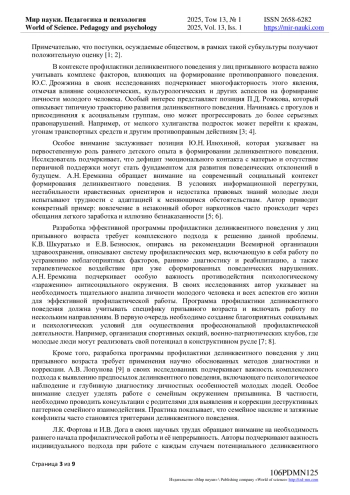 В современных условиях проблема делинквентного поведения среди лиц призывного возраста приобретает особую актуальность, что обусловлено возрастающей социальной напряженностью, трансформацией ценностных ориентиров и усложнением процессов социальной адаптации молодежи.