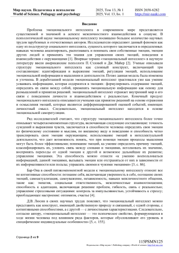 Проблема эмоционального интеллекта в современном мире представляется существенной и значимой в аспекте межличностного взаимодействия в социуме. В психологической науке эмоциональному интеллекту посвящено большое количество научных трудов зарубежных и отечественных авторов.