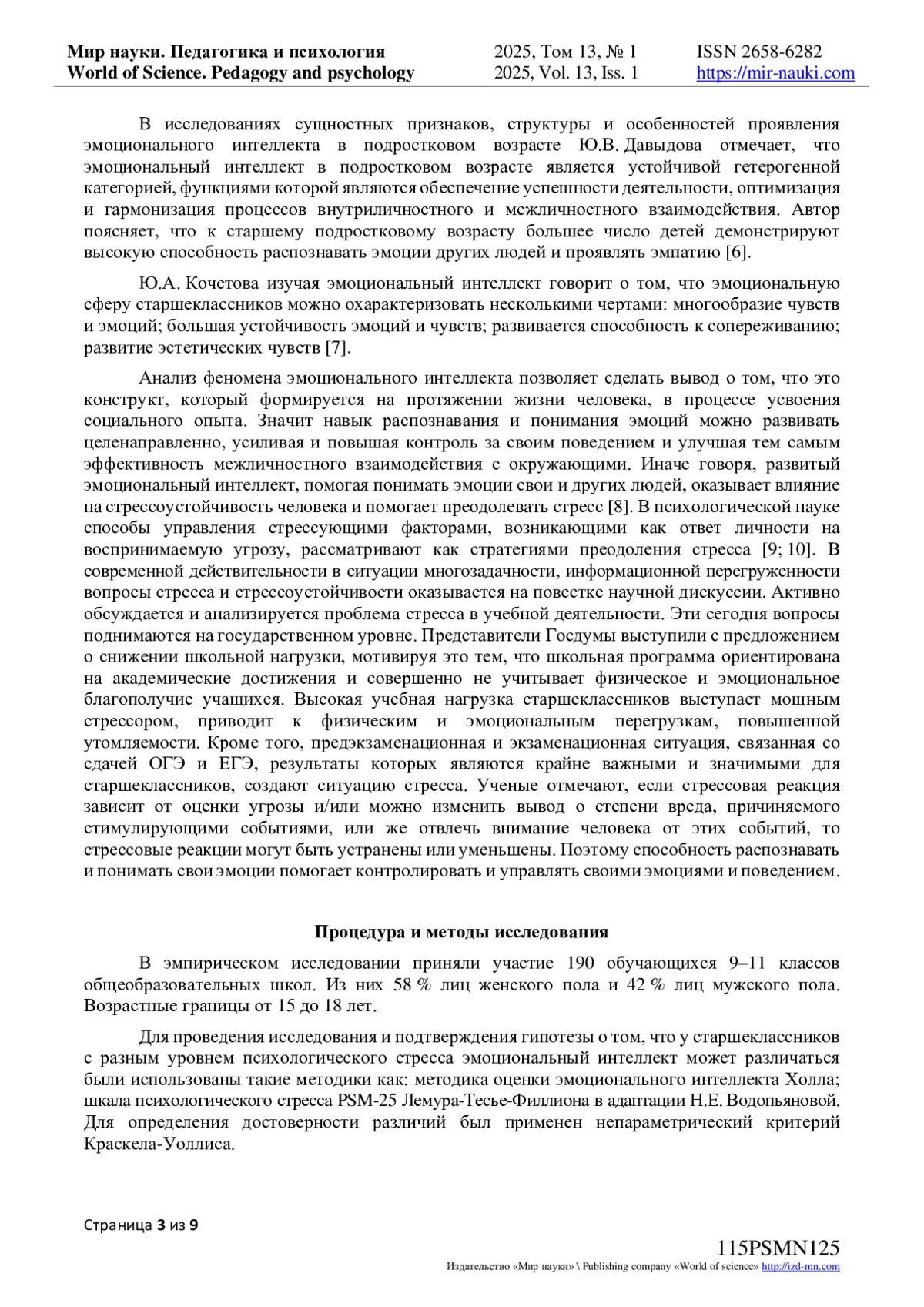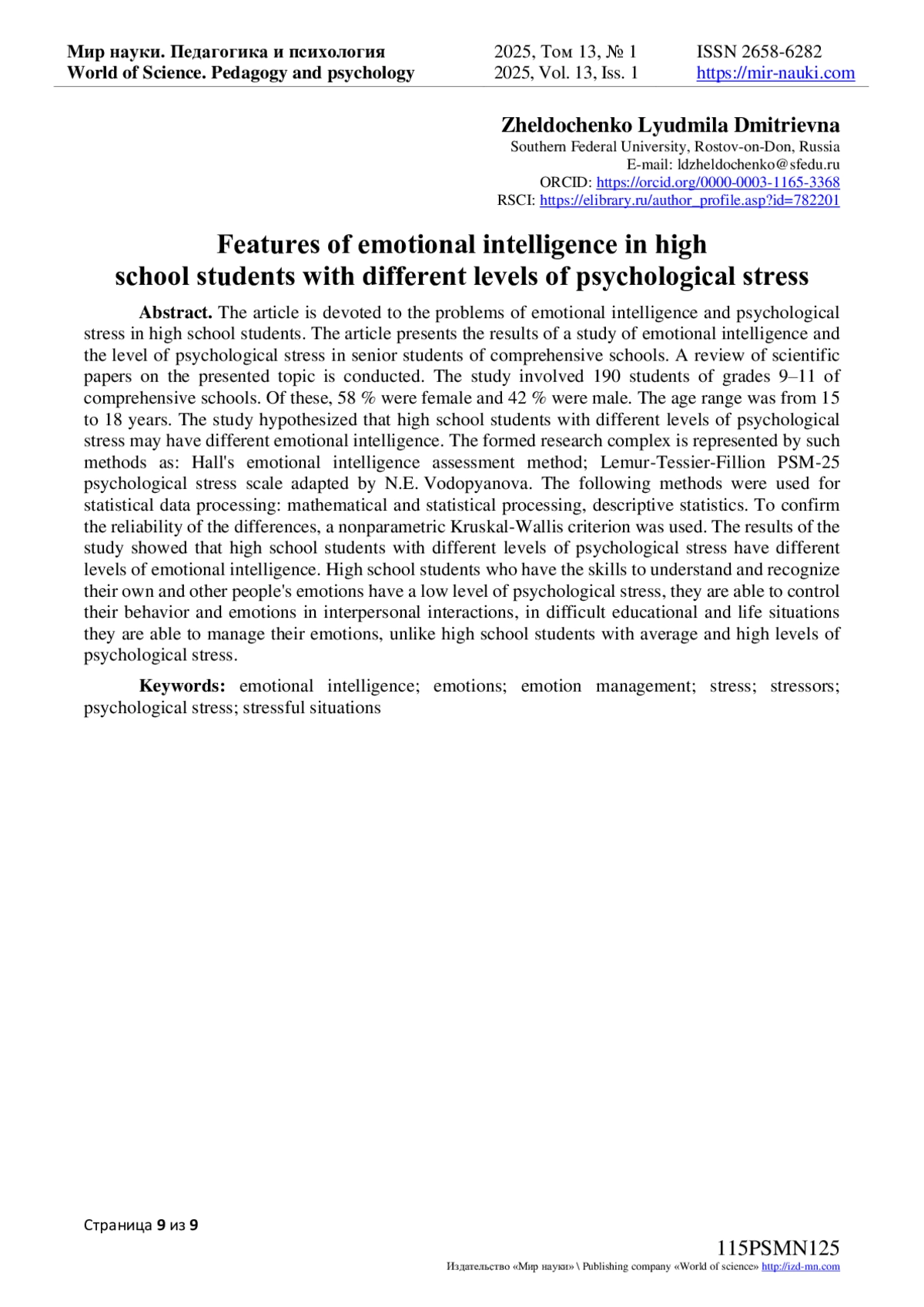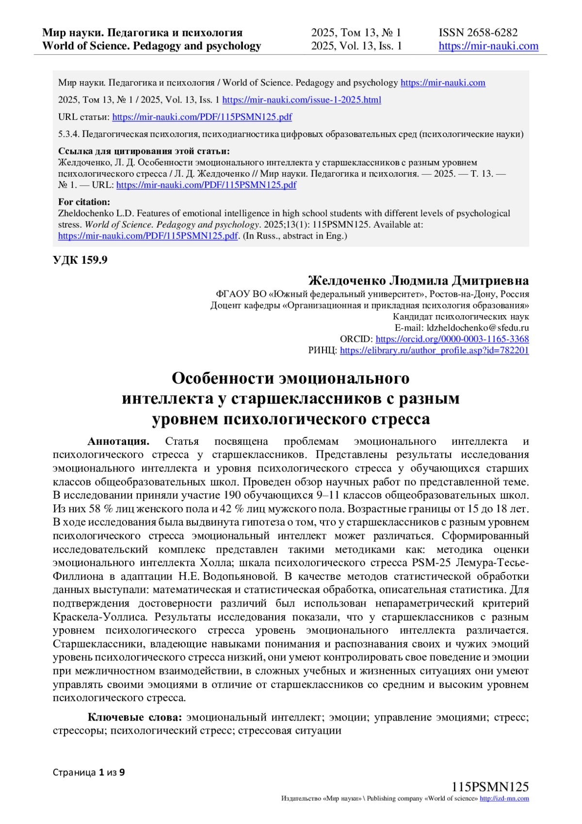 9. Желдоченко Л.Д., Васильченко М.В. Проблема стрессоустойчивости выпускников вуза // Интернет-журнал “Мир науки”, 2018 № 4, https://mir-nauki.com/PDF/03PSMN418.pdf. EDN: IKQDYV
