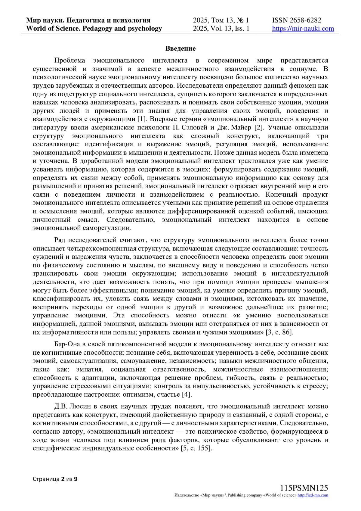 5. Люсин Д.В. Социальный интеллект: Теория, измерения, исследование. М., 2004. 176 с. EDN: QXKOAB