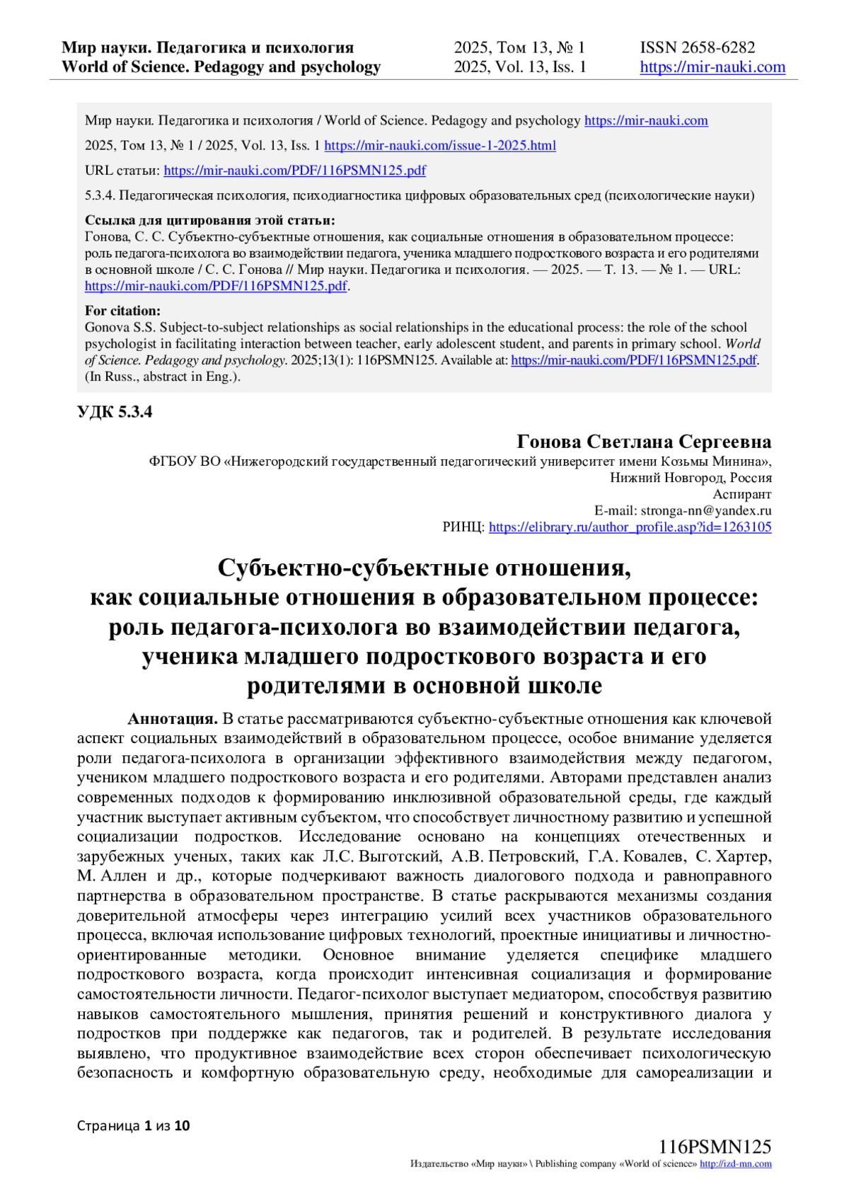 - ИЗДАТЕЛЬСТВО МИР НАУКИ