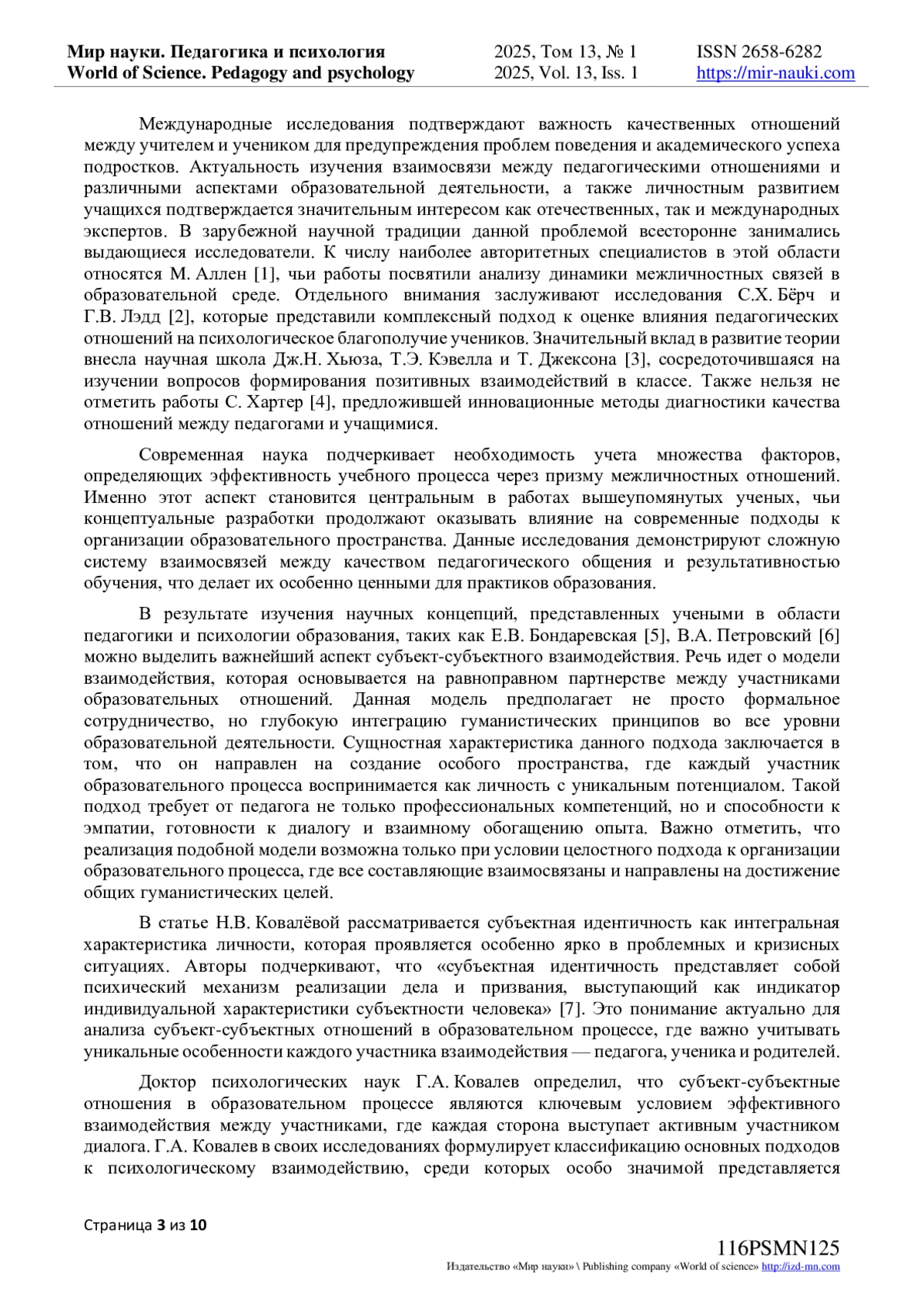 7. Ковалева Н.В. Субъектная идентичность как интегральная характеристика личности / Н.В. Ковалева // Вестник Адыгейского государственного университета. - 2006. - № 1. - С. 170-171.