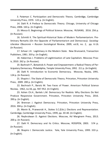 14. Dahl R. A Preface to Democratic Theory. - Chicago: University of Chicago Press, - 2006. - 163 p.