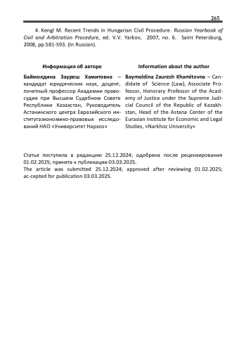 4. Кенгль М. Последние тенденции в венгерском гражданском процессе / М. Кенгль // Рос. ежегодник гражданского и арбитражного процесса. - 2007. - № 6. / под ред. В.В. Яркова. - СПб., - 2008. - С. 581-593