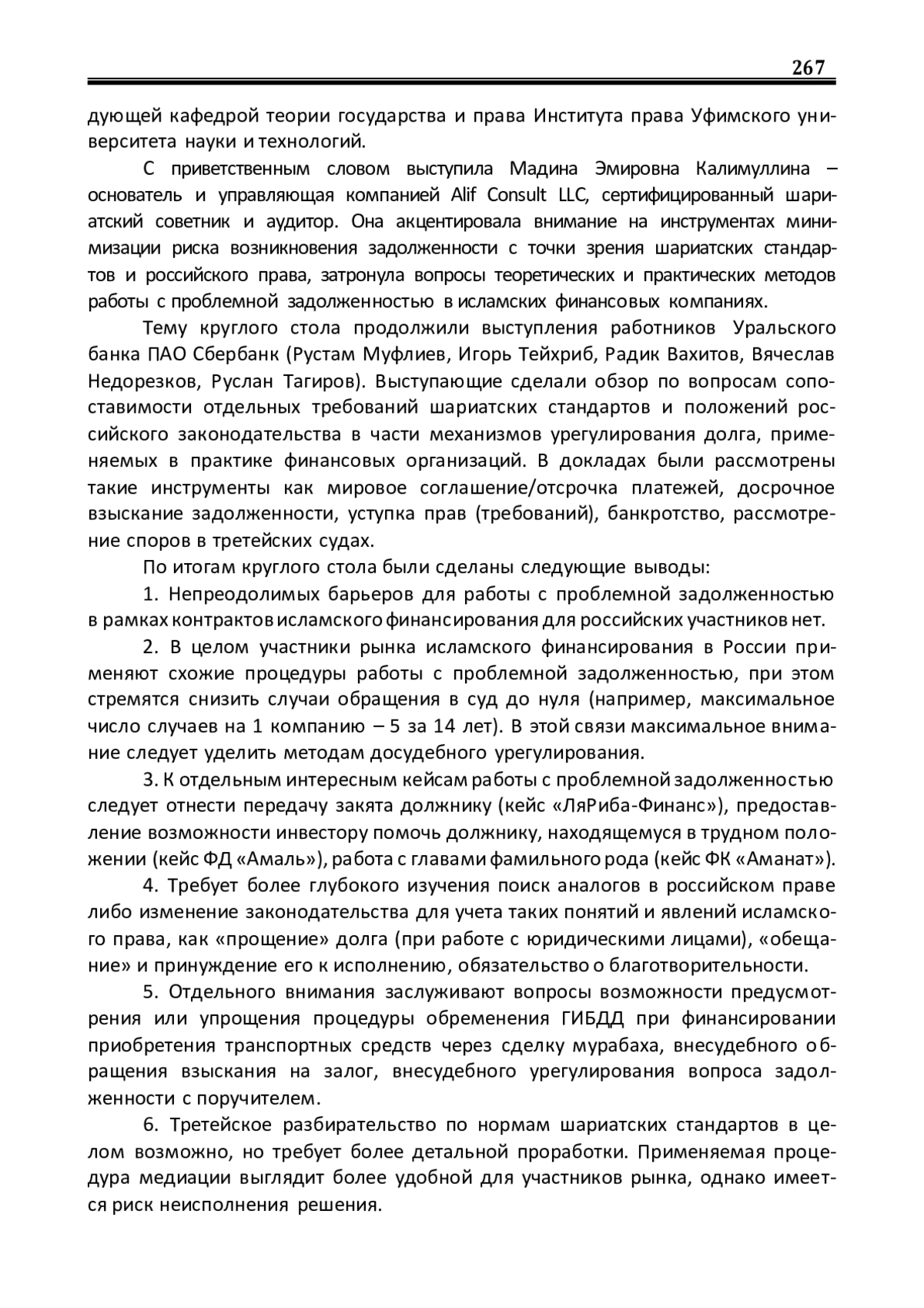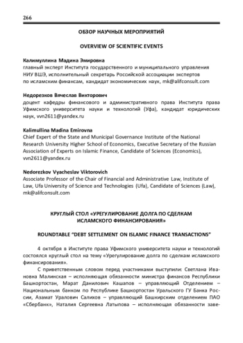 4 октября в Институте права Уфимского университета науки и технологий состоялся круглый стол на тему «Урегулирование долга по сделкам исламского финансирования». С приветственным словом перед участниками выступили: Светлана Ивановна Малинская – исполняющая обязанности министра финансов Республики Башкортостан, Марат Данилович Кашапов – управляющий Отделением – Национальным банком по Республике Башкортостан Уральского ГУ Банка России, Азамат Уралович Салихов – управляющий Башкирским отделением ПАО «Сбербанк», Наталия Сергеевна Латыпова – исполняющая обязанности заведующей кафедрой теории государства и права Института права Уфимского университета науки и технологий.