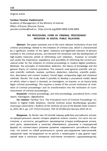 13. Тучков Я.В. Опыт стран постсоветского пространства по оптимизации уголовно-процессуальной формы производств по уголовным делам в условиях цифровизации общественных отношений / Я.В. Тучков // Вестник Дальневосточного юридического института МВД России имени И.Ф. Шилова. - 2025. - № 1 (70). - С. 27-36.