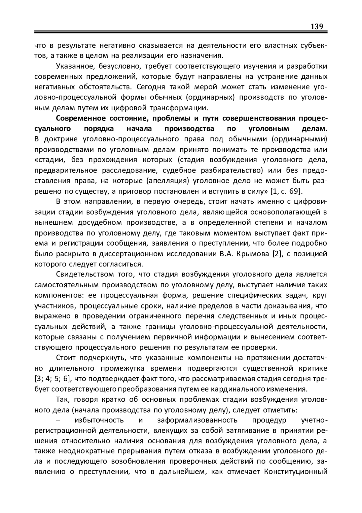2. Крымов В.А. Начало производства по уголовному делу: теоретические и правовые основы: автореф. дис. … канд. юрид. наук: 12.00.09 / В.А. Крымов. - Москва, 2019. - 33 с.