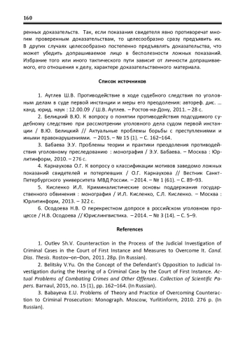 2. Белицкий В.Ю. К вопросу о понятии противодействия подсудимого судебному следствию при рассмотрении уголовного дела судом первой инстанции / В.Ю. Белицкий // Актуальные проблемы борьбы с преступлениями и иными правонарушениями. - 2015. - № 15 (1). - С. 162-164. EDN: UUGPQH