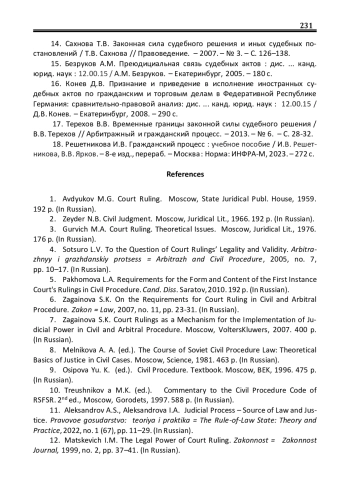 17. Терехов В.В. Временные границы законной силы судебного решения / В.В. Терехов // Арбитражный и гражданский процесс. - 2013. - № 6. - С. 28-32. EDN: QBPNVN