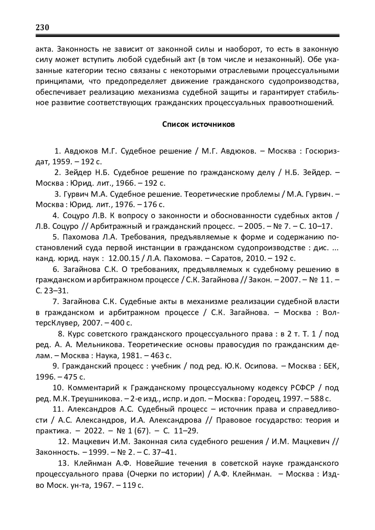 2. Зейдер Н.Б. Судебное решение по гражданскому делу / Н.Б. Зейдер. -Москва: Юрид. лит., 1966. - 192 с.
