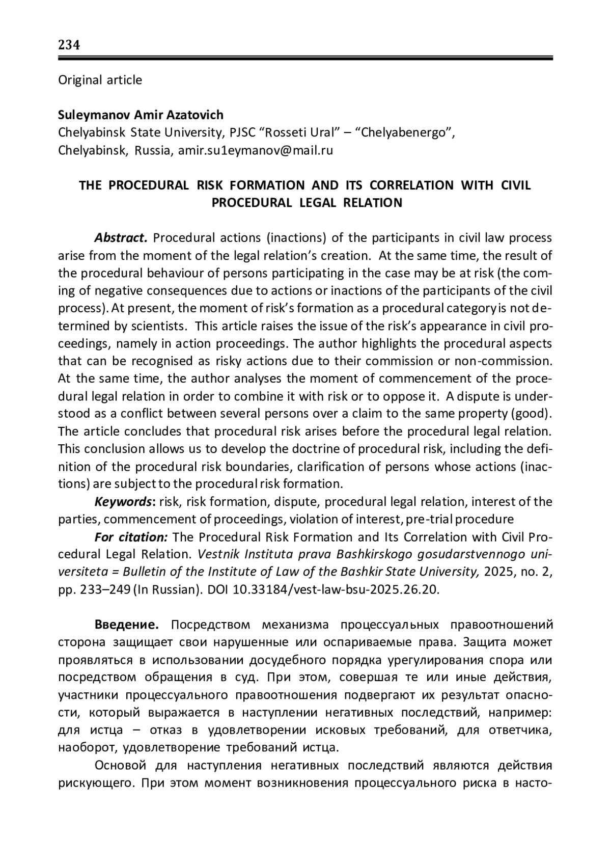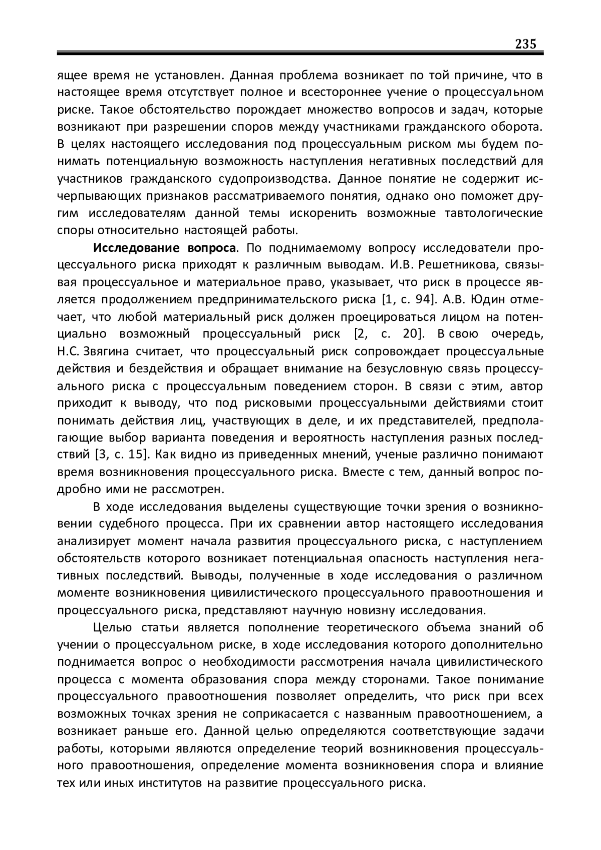 3. Звягина Н.С. Процессуальный риск в гражданском и арбитражном судопроизводстве: автореф. дис.. канд. юрид. наук: 5.1.3. / Н.С. Звягина. - Москва, 2023. - 25 с. EDN: KXNBGO