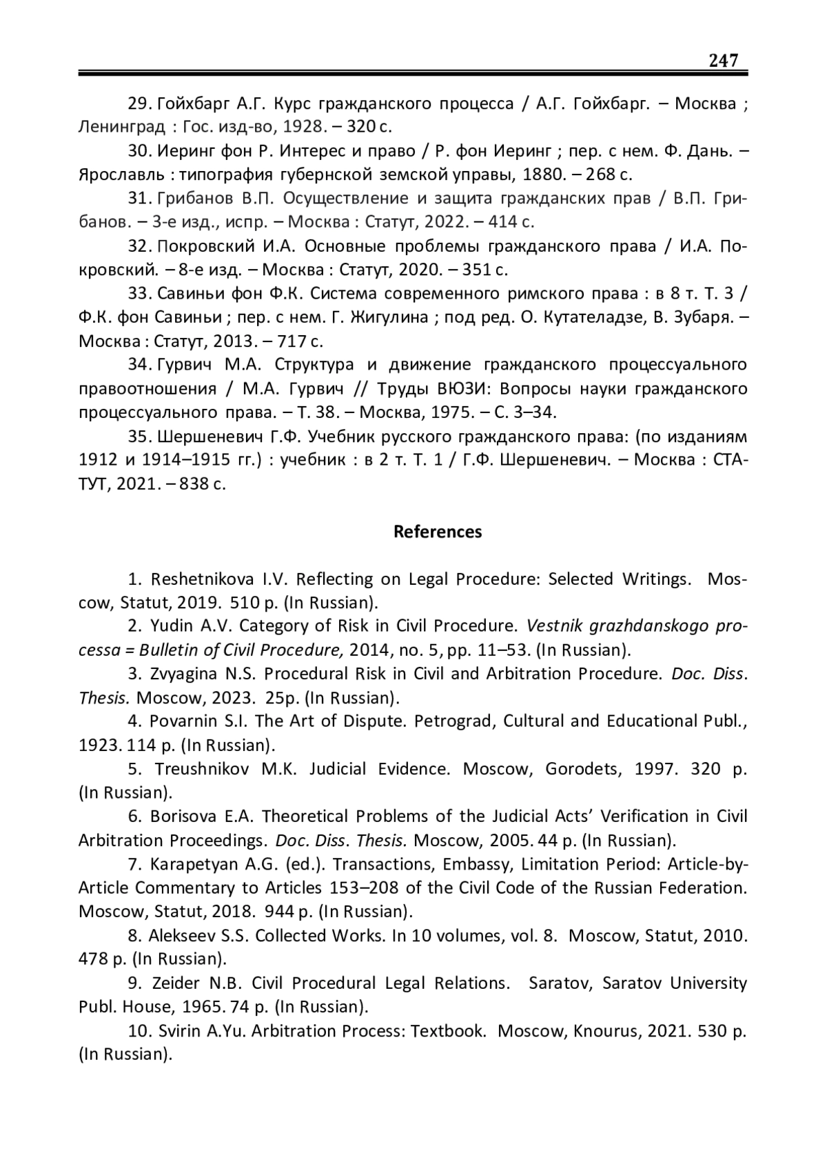 35. Шершеневич Г.Ф. Учебник русского гражданского права: (по изданиям 1912 и 1914-1915 гг.): учебник: в 2 т. Т. 1 / Г.Ф. Шершеневич. - Москва: СТАТУТ, 2021. - 838 с.