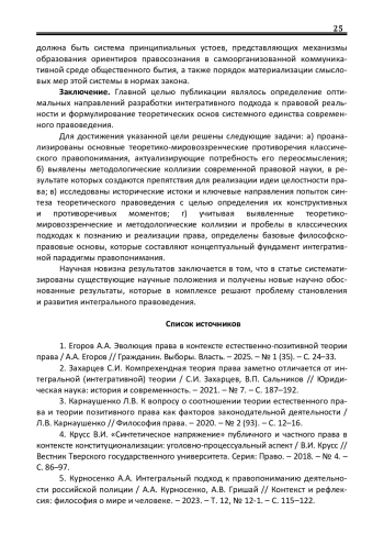1. Егоров А.А. Эволюция права в контексте естественно-позитивной теории права / А.А. Егоров // Гражданин. Выборы. Власть. - 2025. - № 1 (35). - С. 24-33. EDN: UZIQCL