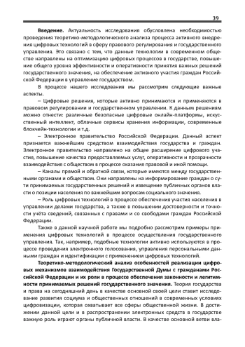 Введение. Актуальность исследования обусловлена необходимостью проведения теоретико-методологического анализа процесса активного внедрения цифровых технологий в сферу правового регулирования и государственного управления. Это связано с тем, что данные технологии в современном обществе направлены на оптимизацию цифровых процессов в государстве, повышение общего уровня эффективности и оперативности принятия важных решений государственного значения, на обеспечение активного участия граждан Российской Федерации в управление государством.