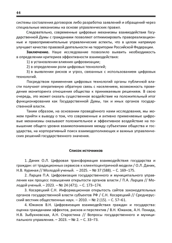 4. Южаков В.Н. Цифровизация взаимодействия граждан и государства: оценка гражданами эффектов, рисков и перспектив / В.Н. Южаков, А.Н. Покида, Н.В. Зыбукновская, А.Н. Старостина // Вопросы государственного и муниципального управления. - 2023. - № 2. - С. 33-73. EDN: BRJMAM