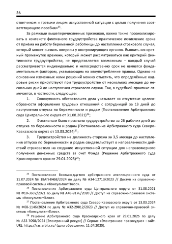 Введение. Одна из наиболее социально значимых функций трудовых правоотношений связана с возникновением у работника ряда гарантий после трудоустройства – в первую очередь возможности получения страхового обеспечения при наступлении определённых обстоятельств. Однако в некоторых случаях стороны трудовых правоотношений злоупотребляют своим правом, заключая трудовые договоры формально, без намерения фактически выполнять работу