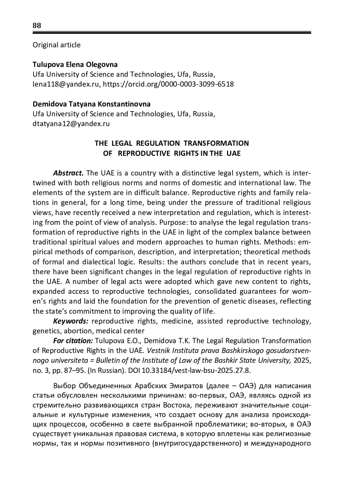 Выбор Объединенных Арабских Эмиратов (далее – ОАЭ) для написания статьи обусловлен несколькими причинам: во-первых, ОАЭ, являясь одной из стремительно развивающихся стран Востока, переживают значительные социальные и культурные изменения, что создает основу для анализа происходящих процессов, особенно в свете выбранной проблематики; во-вторых, в ОАЭ существует уникальная правовая система, в которую вплетены как религиозные нормы, так и нормы позитивного (внутригосударственного) и международного
