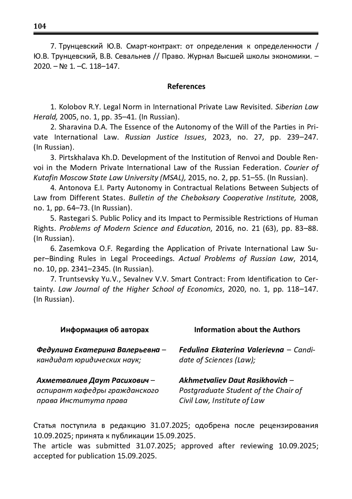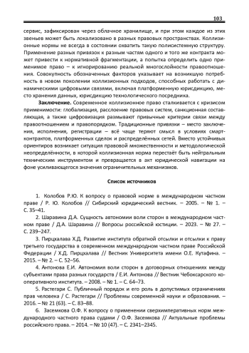 2. Шаравина Д.А. Сущность автономии воли сторон в международном частном праве / Д.А. Шаравина // Вопросы российской юстиции. - 2023. - № 27. - С. 239-247. EDN: VSQMKK