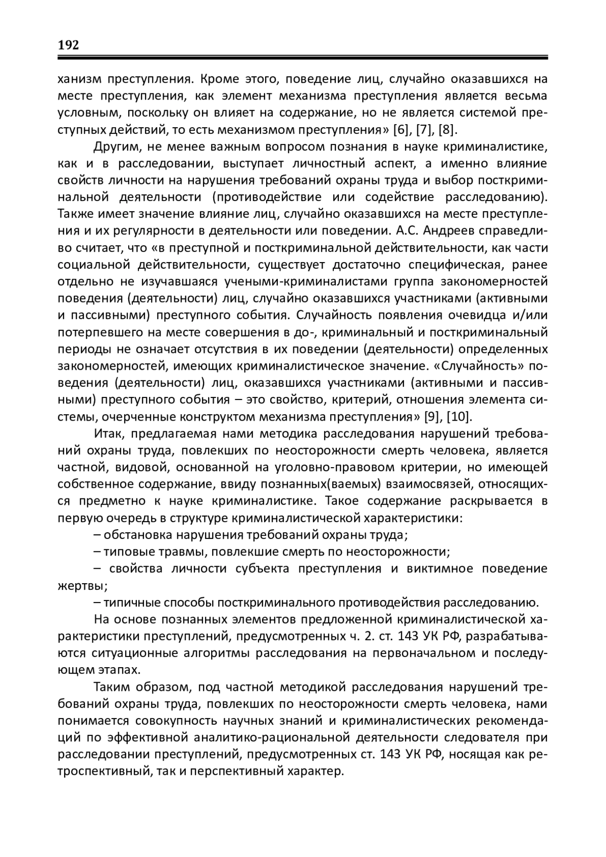 9. Андреев А.С. Поведение (деятельность) лиц, случайно оказавшихся участниками преступного события, как элемент механизма преступления: от постановки научной проблемы к результатам исследования / А.С. Андреев // Вестник Томского государственного университета. Право. - 2018. - № 27. - С. 5-22. EDN: YVIQFR