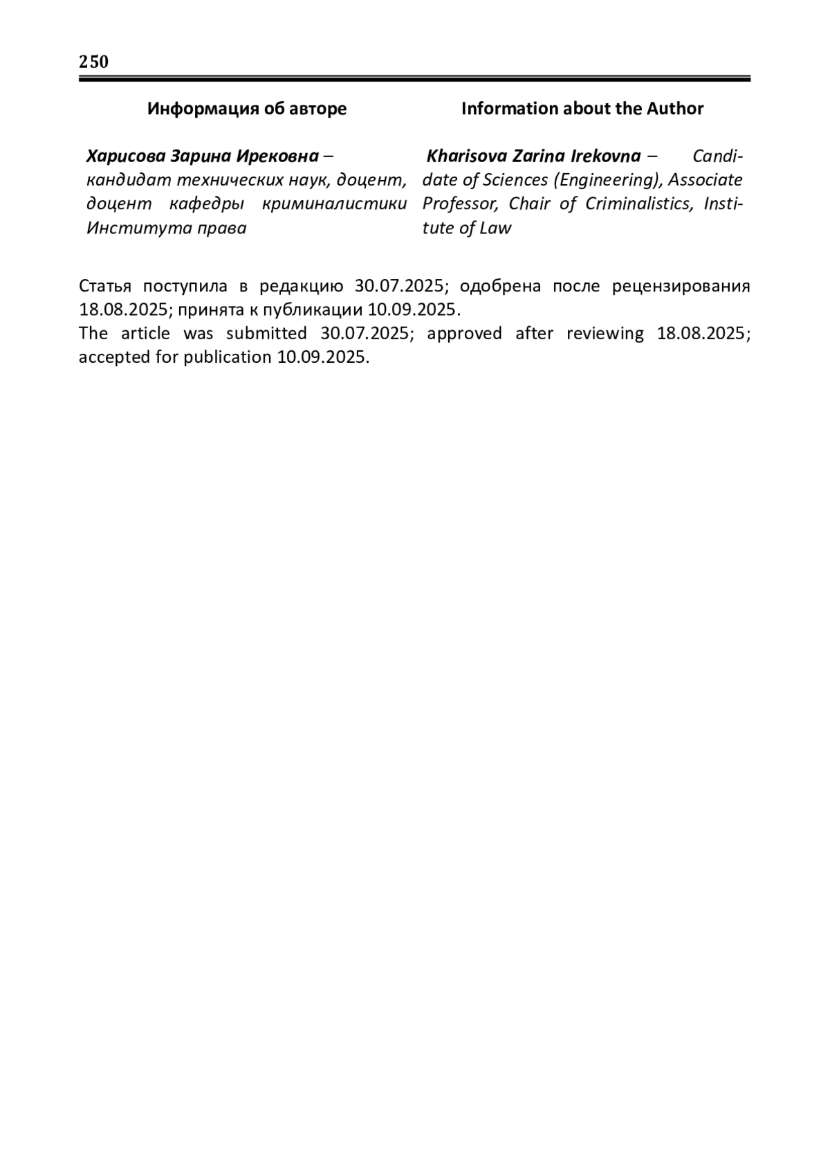 Рад сообщить всем, что с 30 мая 2025 года наш журнал «Вестник Института права Башкирского государственного университета» повышен в рейтинге научных журналов – включен в категорию 2 (К2) Перечня ВАК Российской Федерации. Это достигнуто за счет поддержки руководства и преподавателей Института права, работы сотрудников редакции журнала и является результатом публикаций ведущих российских ученых, направляющих в наш журнал итоги интереснейших актуальных научных исследований. Журнал с радушием принимает к публикации статьи зарубежных коллег из Беларуси, Казахстана, Узбекистана и других стран. В журнале уделяется внимание широкому спектру юридических наук: от теоретико-исторических правовых наук (шифр 5.1.1) до международно-правовых наук (шифр 5.1.5), включая правовые проблемы семьи и образования, уголовного процесса, криминалистики и судебной экспертизы, защиты прав граждан и инвестиционной деятельности и многие другие вопросы