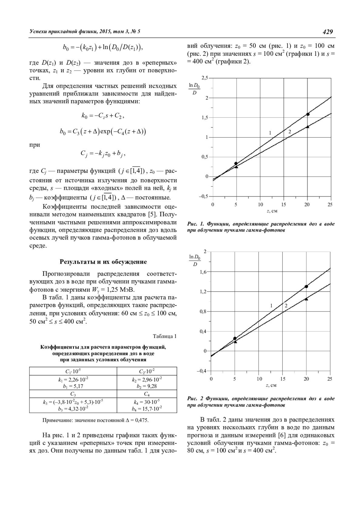 Акаткин О. А., Кулиш О. А., Петрова О. В. Модель для прогноза распределений поглощенных доз вдоль осевых лучей пучков гамма-фотонов в облучаемой низкоатомной среде 428