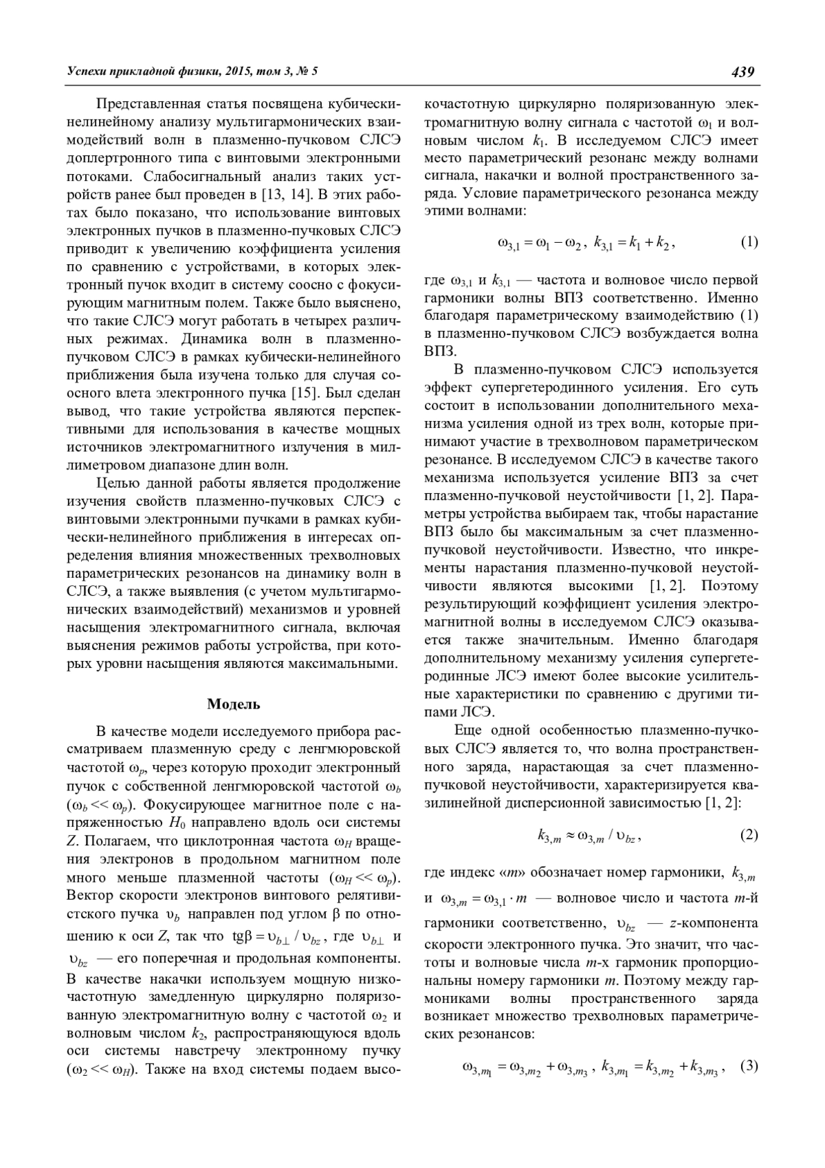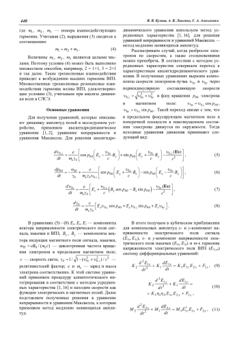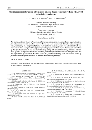 Кулиш В. В., Лысенко А. В., Алексеенко Г. А. Мультигармонические взаимодействия волн в плазменно-пучковых супергетеродинных ЛСЭ с винтовыми электронными пучками 438