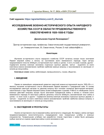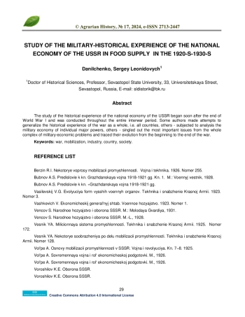 Изучение исторического опыта народного хозяйства СССР началось вскоре после окончания Первой мировой войны и велось на протяжении всего межвоенного периода. Одни авторы предпринимали попытки обобщить исторический опыт войны в целом, то есть по всем странам, другие - подвергали анализу военную экономику отдельных крупных держав, третьи - выделяли из всего комплекса военно-экономических проблем наиболее важные вопросы и прослеживали их эволюцию от начала до конца войны.