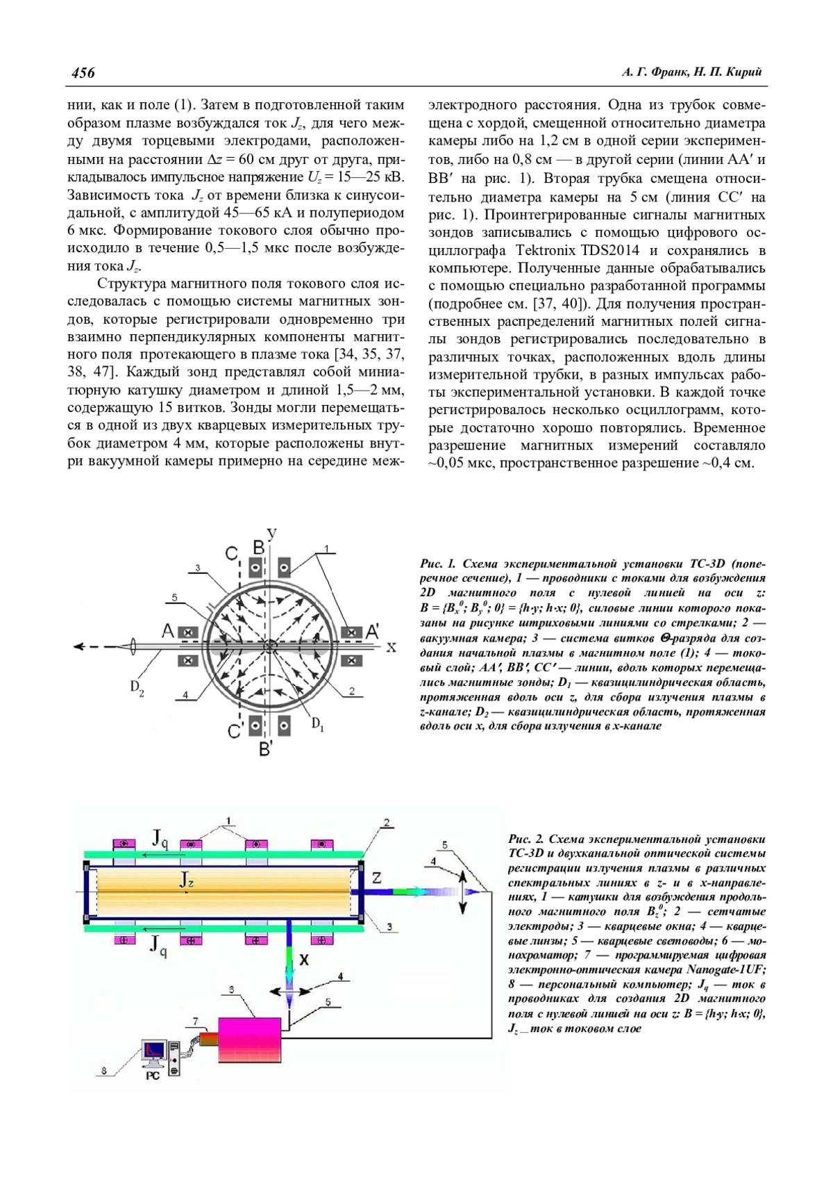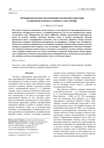 Франк А. Г., Кирий Н. П. Экспериментальные исследования магнитной структуры и динамики плазмы в токовых слоях (обзор) 454