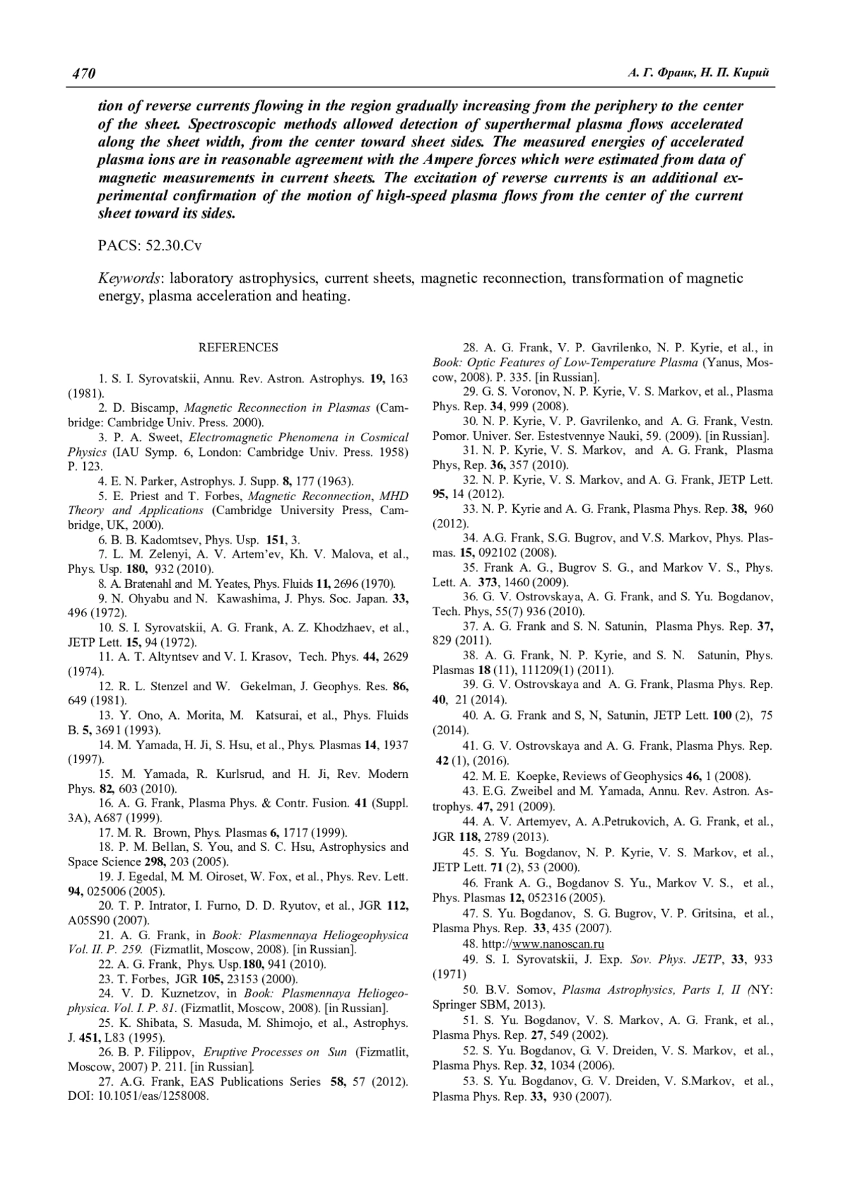 33. Кирий Н. П., Франк А. Г. // Физика плазмы. 2012. Т. 38. С. 1042.