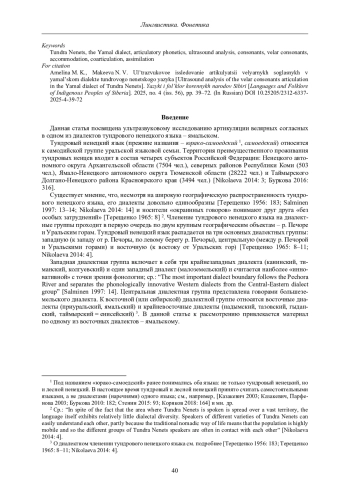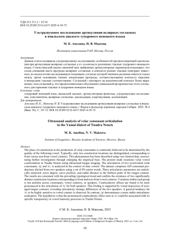Данная статья посвящена ультразвуковому исследованию артикуляции велярных согласных в одном из диалектов тундрового ненецкого языка – ямальском.