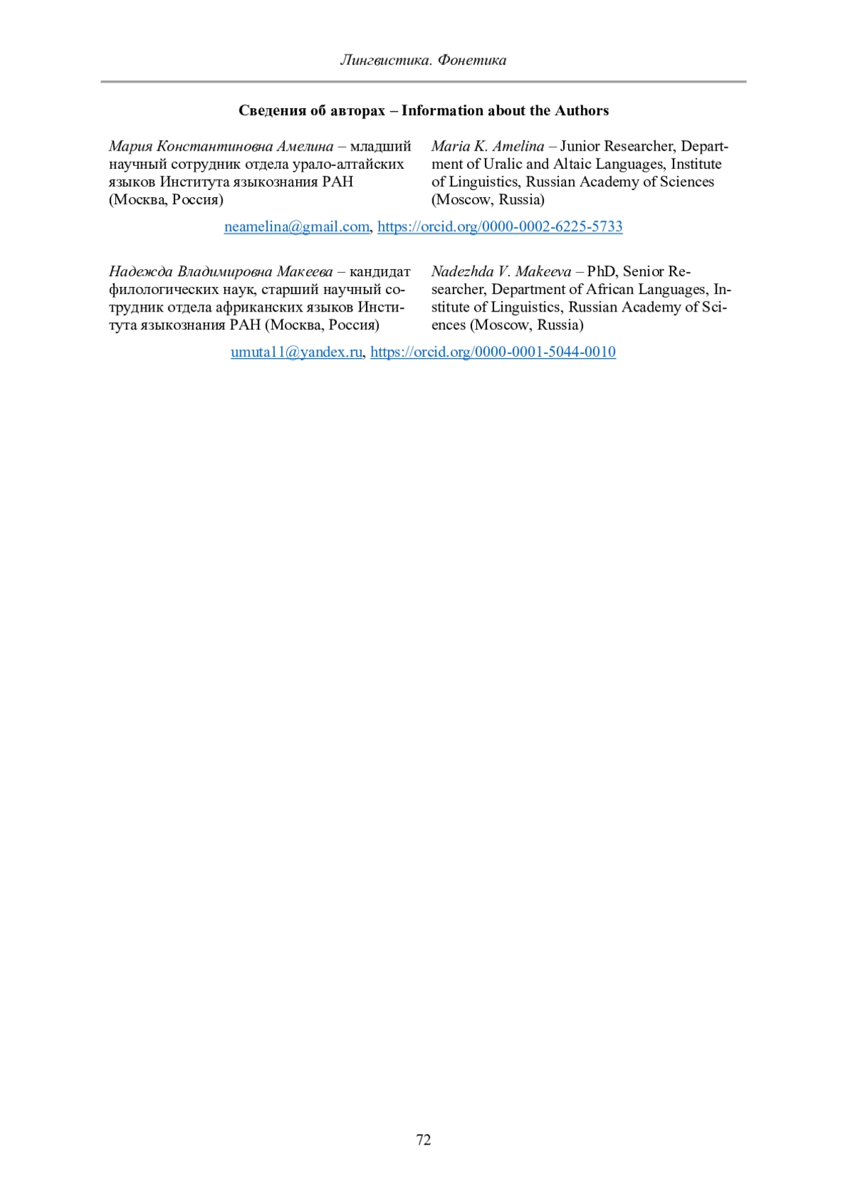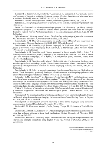34. Miller A. Posterior lingual gestures and tongue shape in Mangetti Dune !Xung clicks // Journal of Phonetics. 2016. No. 55 (1). Pp. 119-148.