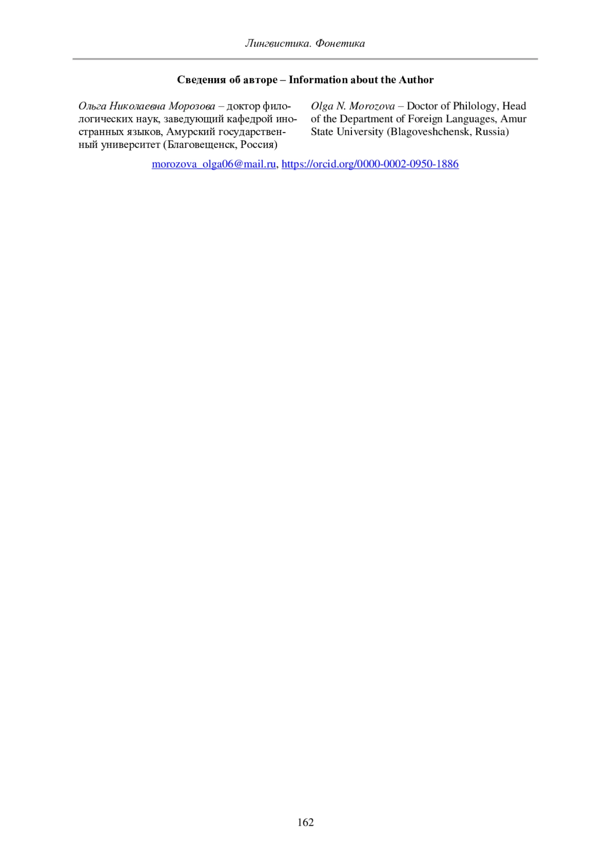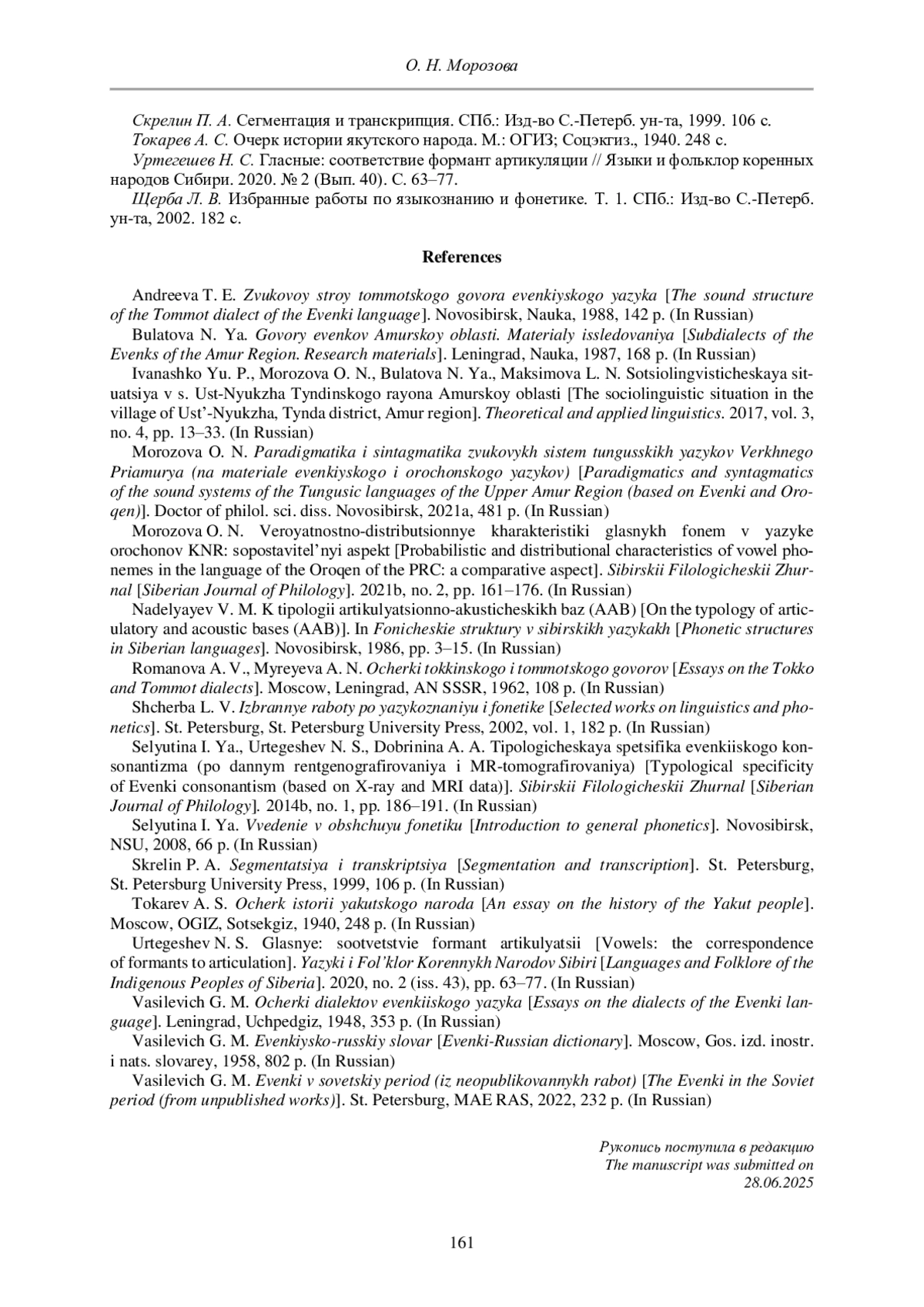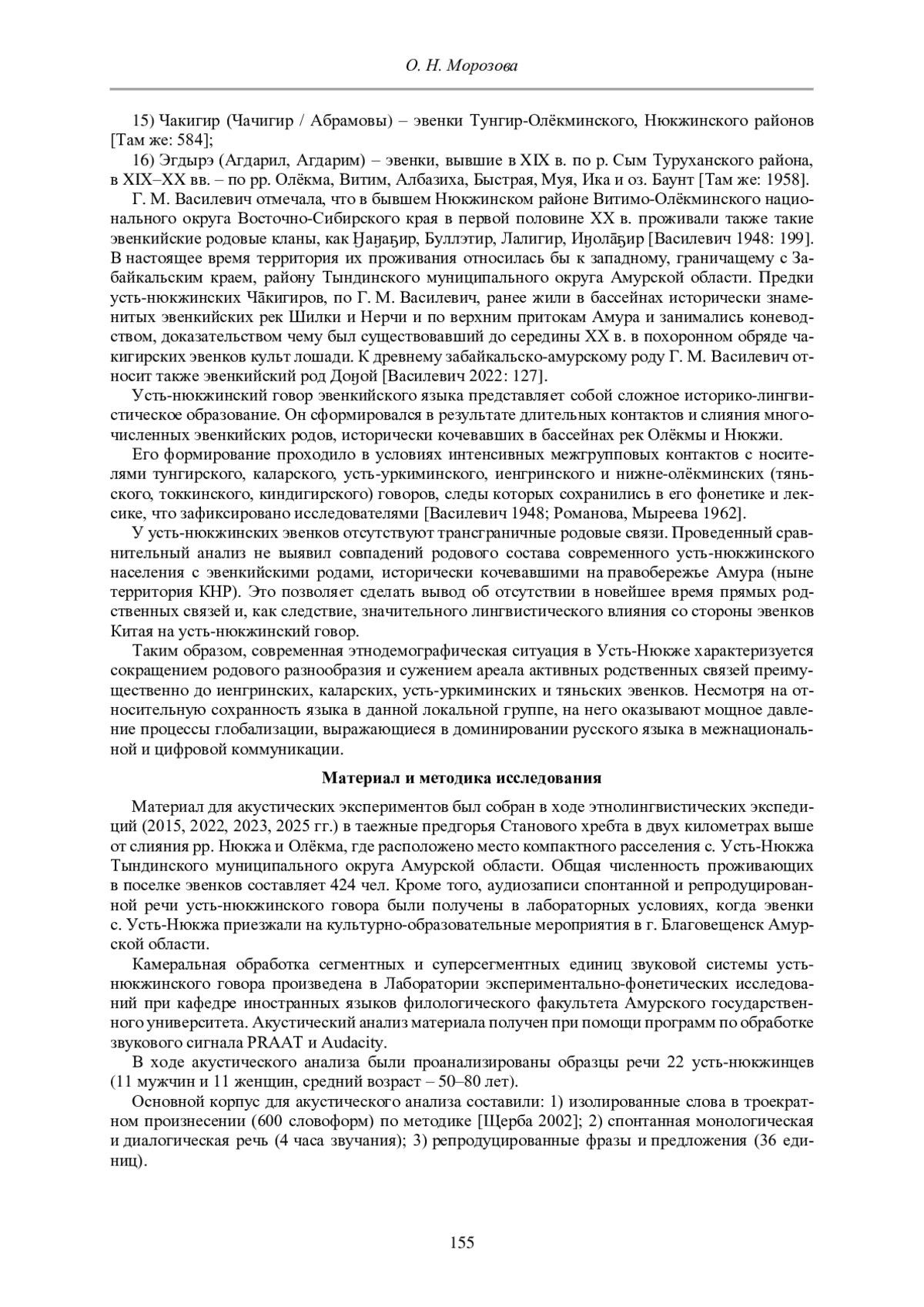 8. Морозова О. Н. Вероятностно-дистрибуционные характеристики гласных фонем в языке орочонов КНР: сопоставительный аспект // Сибирский филологический журнал. 2021б. № 2. С. 161- 176. EDN: MEMFZU