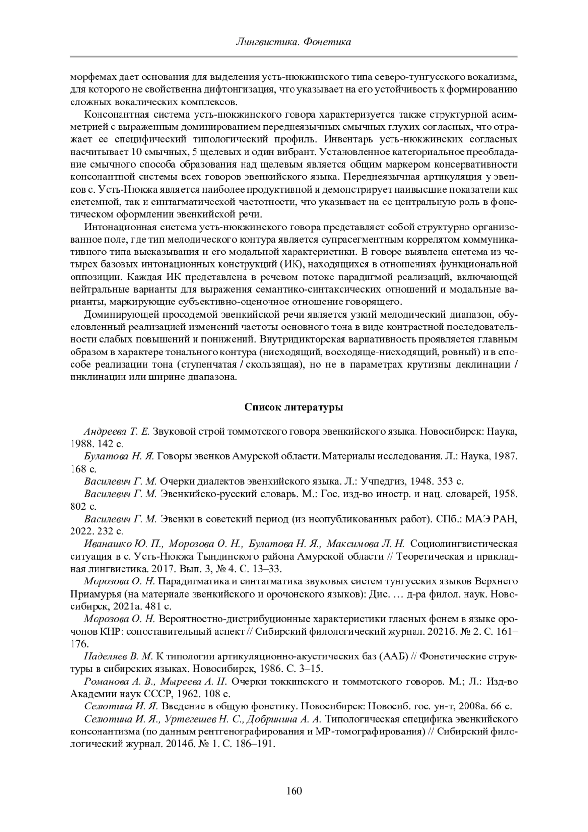 7. Морозова О. Н. Парадигматика и синтагматика звуковых систем тунгусских языков Верхнего Приамурья (на материале эвенкийского и орочонского языков): Дис. … д-ра филол. наук. Новосибирск, 2021а. 481 с. EDN: ZONIDX