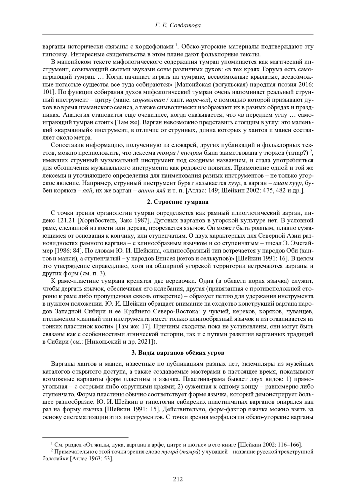 22. Шейкин Ю. И. Типология конструкций варганов народов Сибири // Варган (хомус) и его музыка: Материалы I Всесоюз. конф. (Якутск, 1988). Якутск, 1991. С. 14-22.