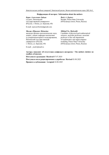 7. Лапич А. О., Медведик М. Ю. Алгоритм поиска неоднородностей в обратных нелинейных задачах дифракции // Ученые записки Казанского университета. Серия Физико-математические науки. 2024. Т. 166, № 3. С. 395-406. EDN: APMTAY