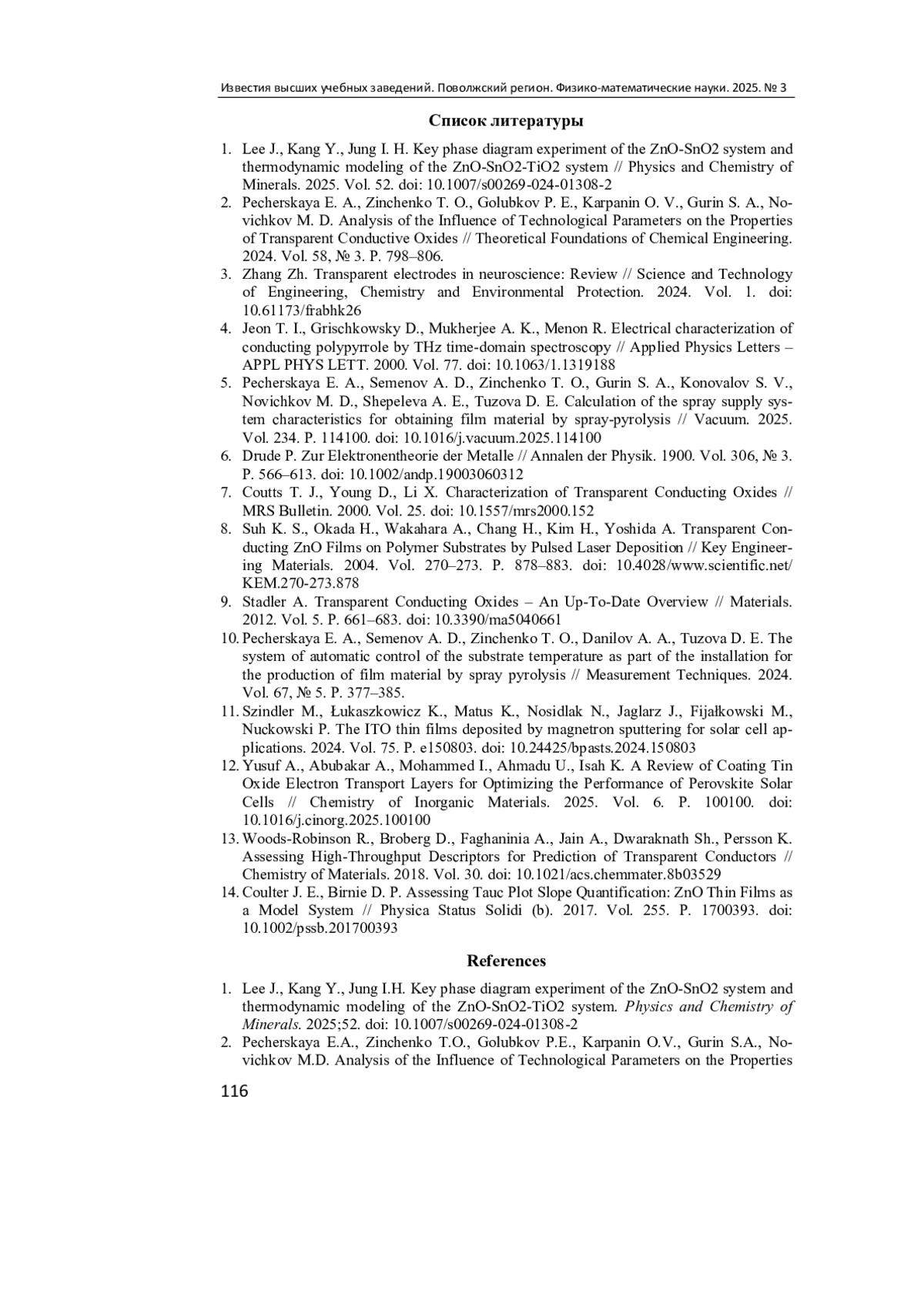Выводы. Результаты экспериментального исследования SnO₂: Sb хорошо согласуются с теорией Друде для описания электрофизических свойств прозрачных проводящих оксидов. Даны рекомендации по выбору метода интерполяции с учетом физической природы анализируемых зависимостей. Полученные результаты целесообразно использовать для оптимизации технологических режимов процесса получения SnO₂: Sb с заданными электрофизическими свойствами.