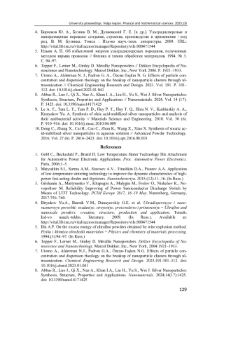 4. Бирюков Ю. А., Бузник В. М., Дунаевский Г. Е. [и др.]. Ультрадисперсные и наноразмерные порошки: создание, строение, производство и применение / под ред. В. М. Бузника. Томск: Изд-во науч.-техн. литературы. 2009. URL: http://vital.lib.tsu.ru/vital/access/manager/Repository/vtls:000471544.