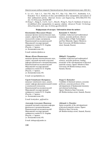 9. Le A. T., Tam L. T., Tam P. D., Huy P. T., Huy T. Q., Hieu N. V., Kudrinskiy A. A., Krutyakov Yu. A. Synthesis of oleic acid-stabilized silver nanoparticles and analysis of their antibacterial activity // Materials Science and Engineering. 2010. Vol. 30 (6). P. 910-916. DOI: 10.1016/j.msec.2010.04.009