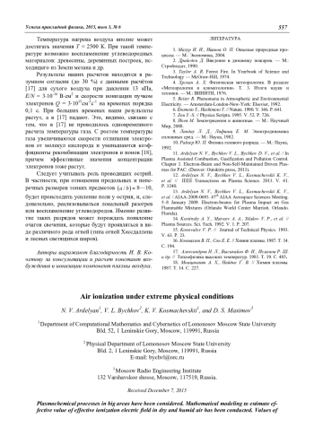 Рассмотрены плазмохимические процессы в больших областях воздуха (на больших временах) в экстремальных грозовых и атмосферных условиях. Проведено математическое моделирование, на основе которого оценены эффективные величины приведенных напряжённостей электрических полей при лавинном развитии процессов нагрева газа. Оценены величины температуры локального разогрева. Дана оценка роли острий в объеме газа в исследуемых процессах развития нагрева. Развитие разрядов на этих объектах может порождать появление очагов свечения и воспламенения углеводородных материалов, которые будут проявляться в виде огней Хессдалена и лесных светящихся шаров.