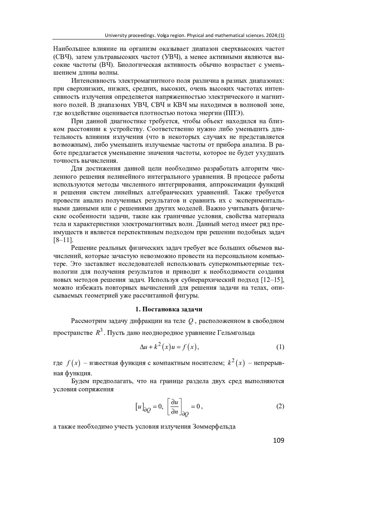 14. Медведик М. Ю. Субиерархический метод решения интегрального уравнения Липпмана - Швингера на телах сложной формы // Радиотехника и электроника. 2012. Т. 57, № 2. С. 175-180. EDN: OPTDUN