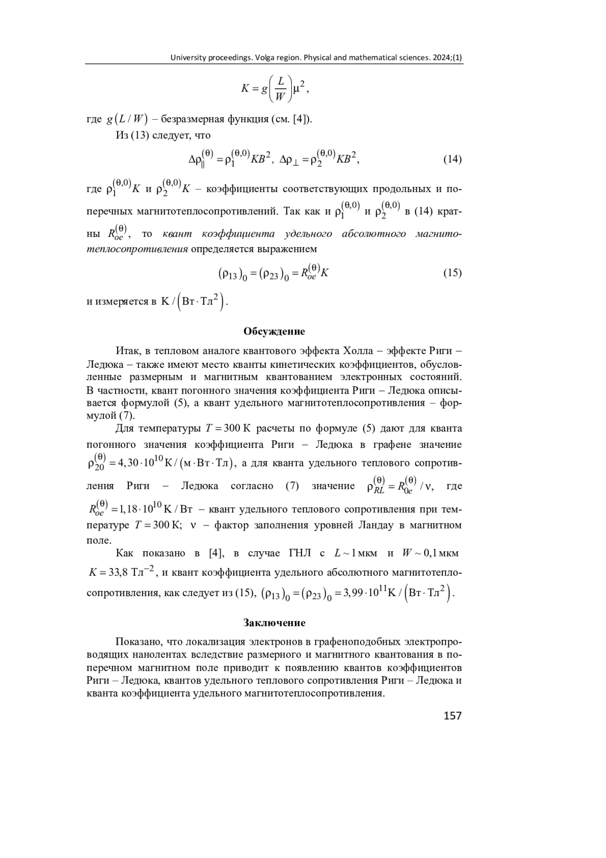 3. Браже Р. А., Гришина А. А. Кванты коэффициентов Зеебека, Пельтье и Томсона в наномасштабных проводниках // Известия высших учебных заведений. Поволжский регион. Физико-математические науки. 2023. № 2. С. 59-67. DOI: 10.21685/2072-3040-2023-2-6 EDN: JXQGUY