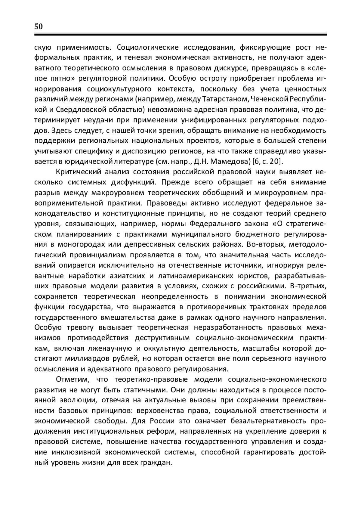 6. Мамедов Д.Н. Правовые аспекты стратегического планирования в Российской Федерации / Д.Н. Мамедов // Образование и право. - 2020. - № 2. - С. 17-20. EDN: CJNJYI